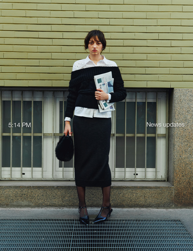 Create a sophisticated look with our black midi skirt or dare in a dress with sequin floral details. Don’t forget the final touch: the essential structured blazer.