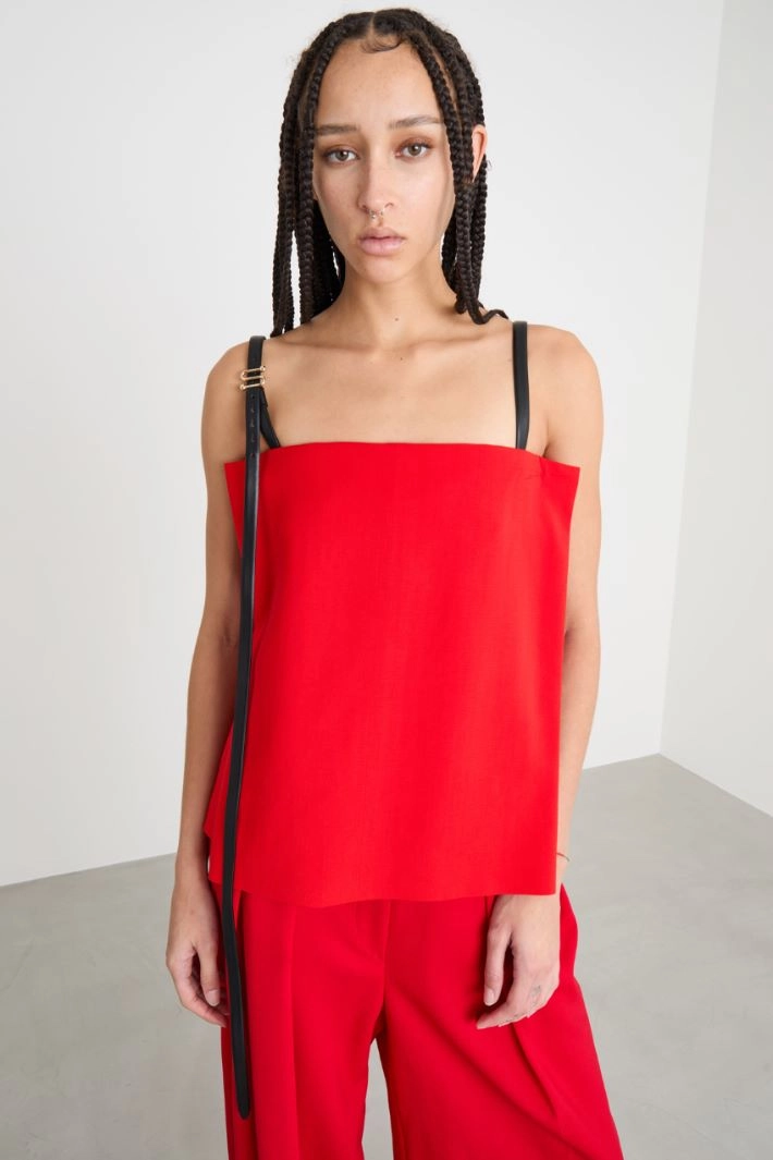 Off-shoulder top in stretch-viscose cady, featuring mock slits on the sides and detachable, slender leather shoulder straps.