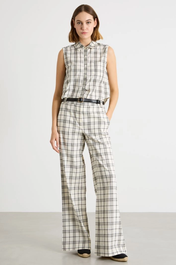 Straight-fit top in pure cotton, featuring a point collar, a patch pocket on the chest, wide shoulder straps and a jewelled-button fastening.