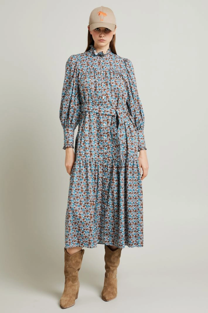Printed twill shirt with frills
