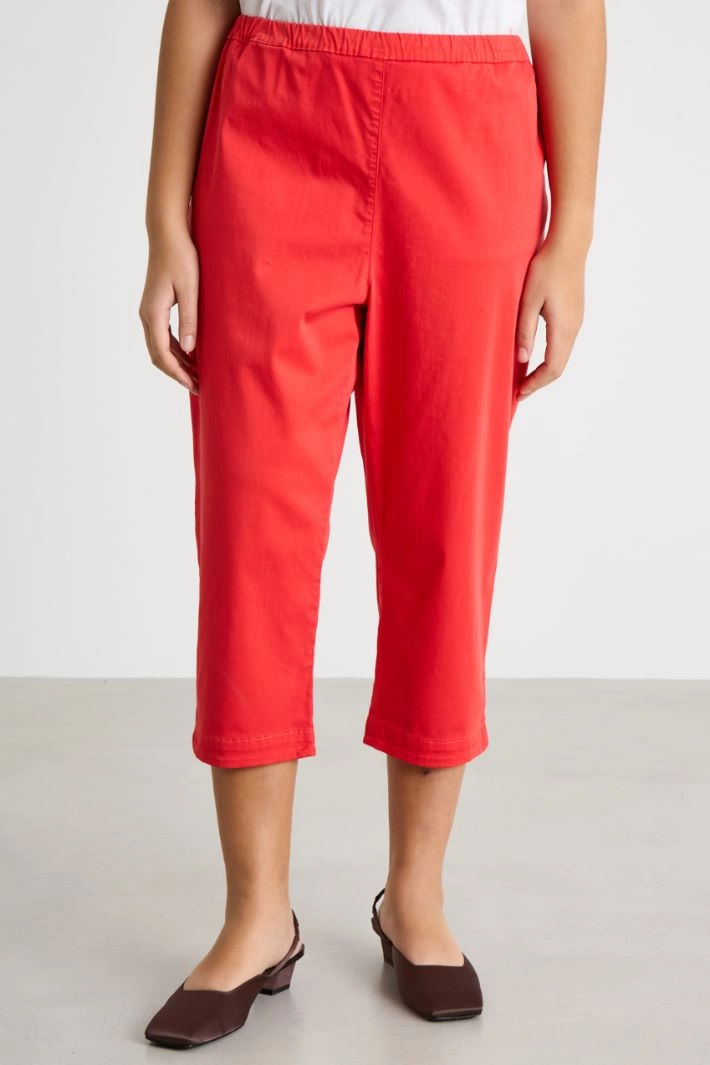 Slim-fit trousers in cotton sateen, with an elasticated waist and small slits at the hem.